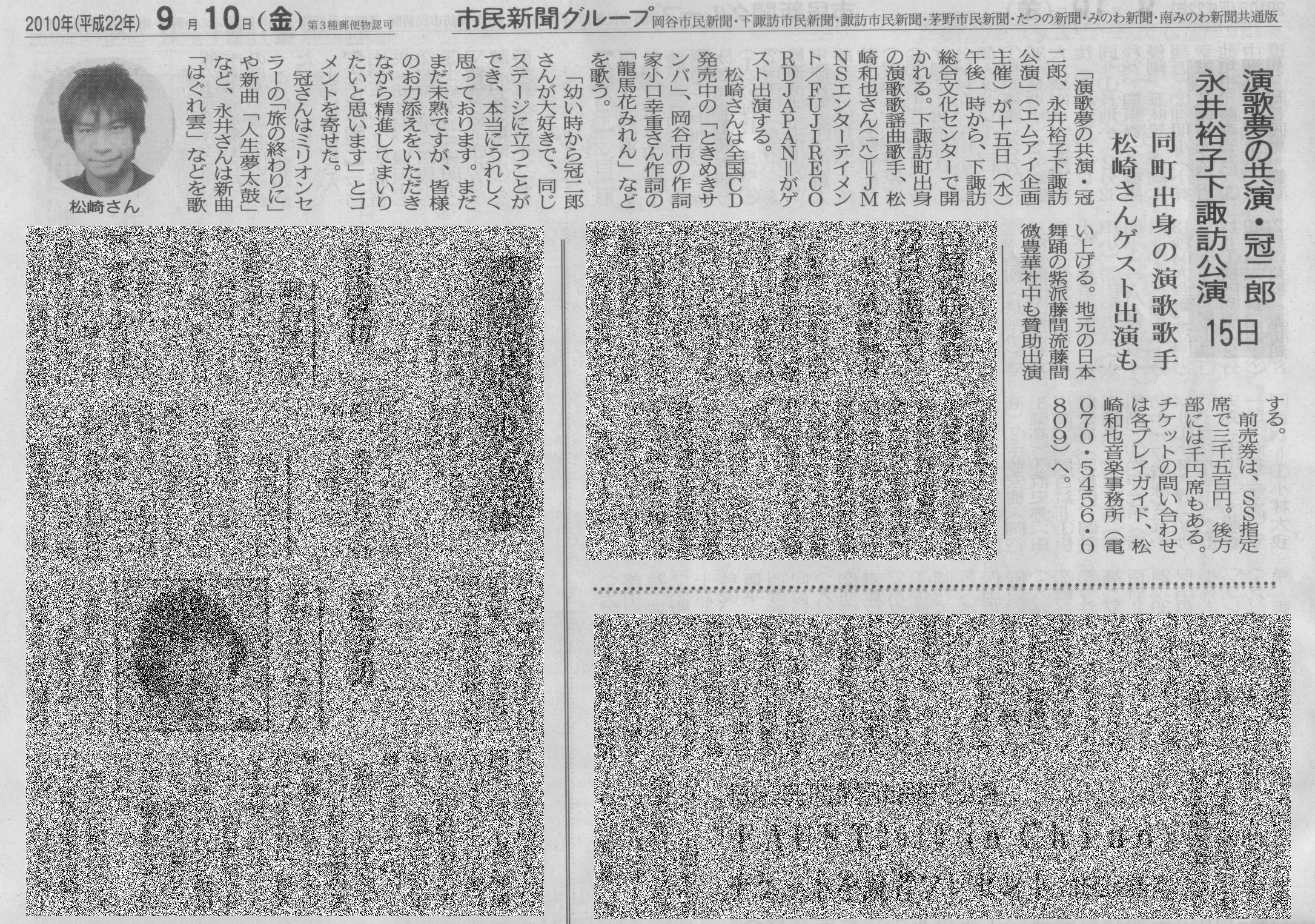 「演歌夢の共演 冠二郎・永井裕子下諏訪公演」記事