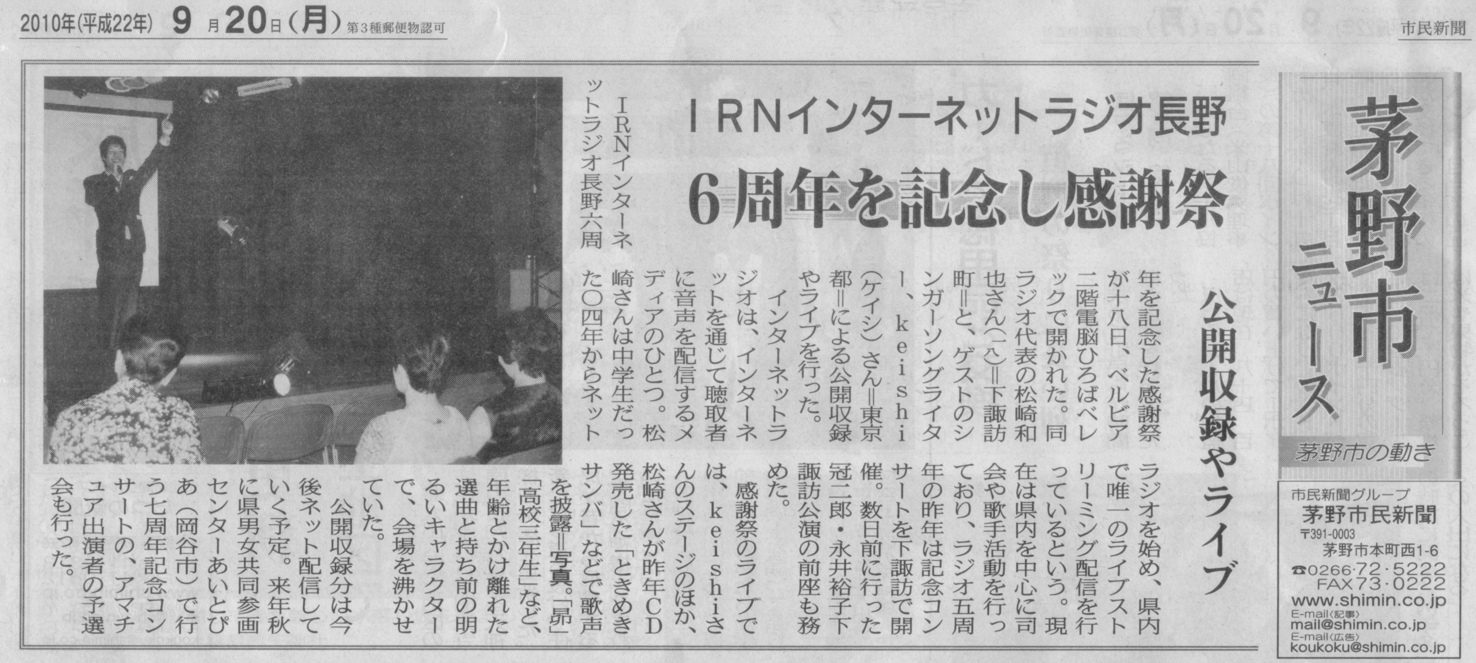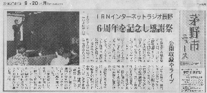 ~IRNインターネットラジオ長野開局6周年記念~」記事