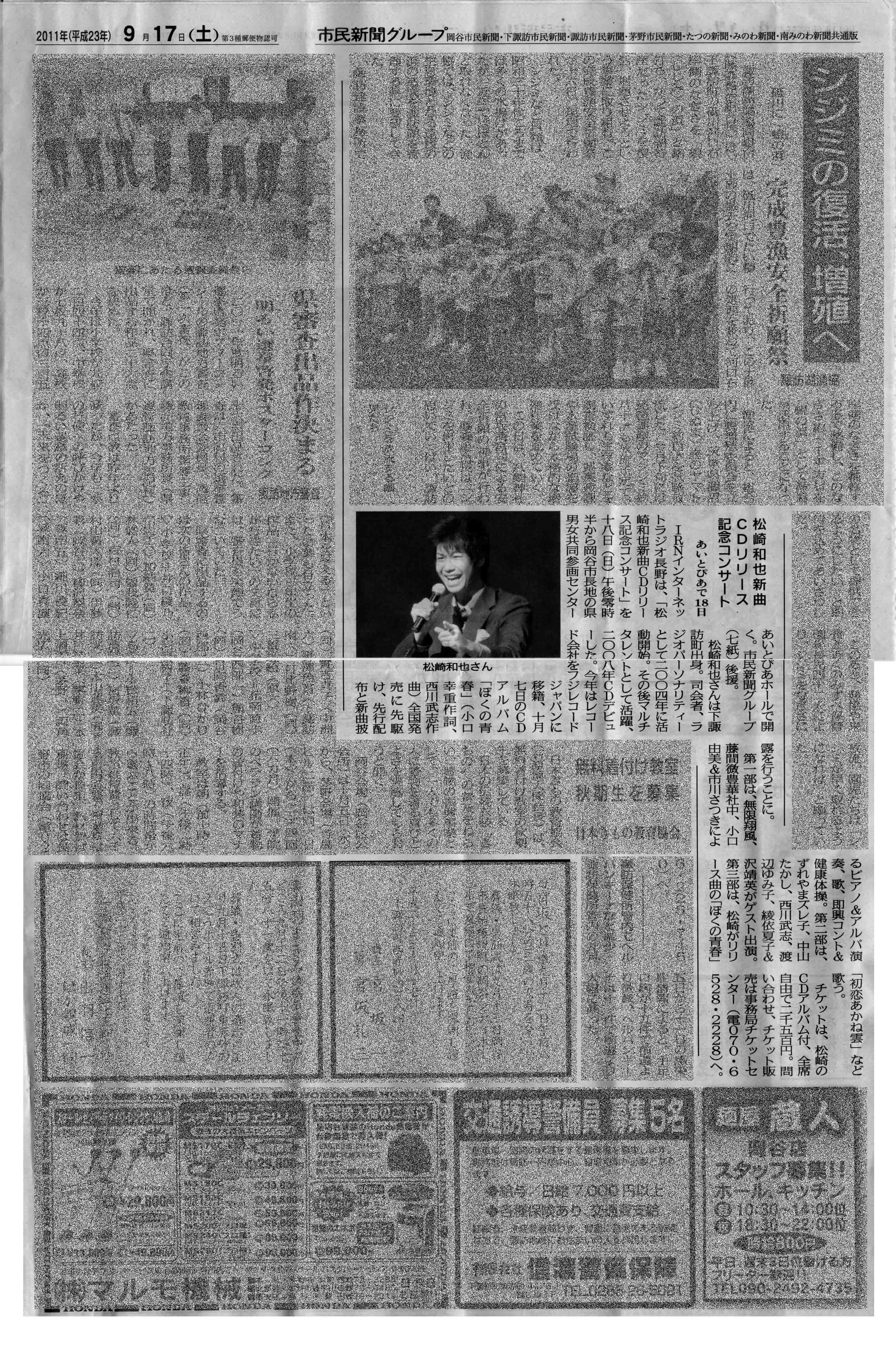 2010年9月11日 信州・市民新聞グループ(7紙)掲載