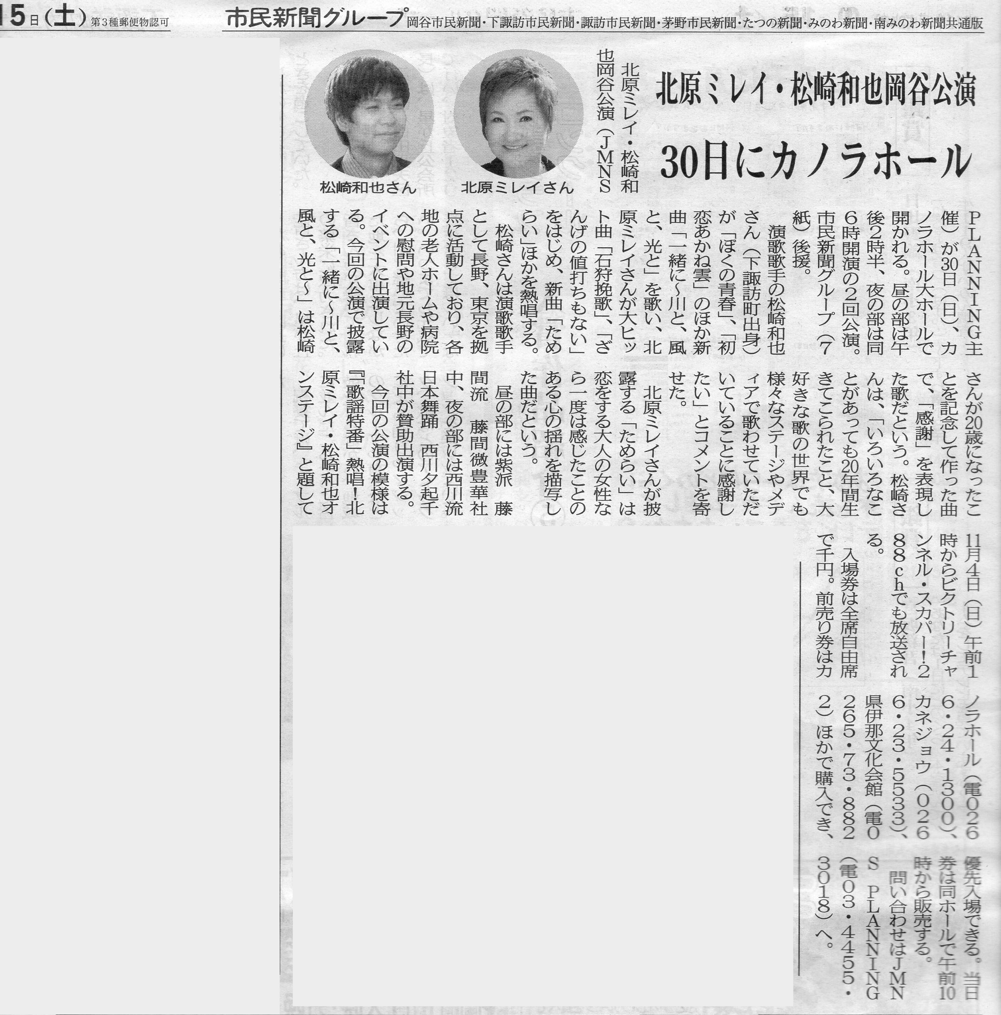 「北原ミレイ・松崎和也岡谷公演」