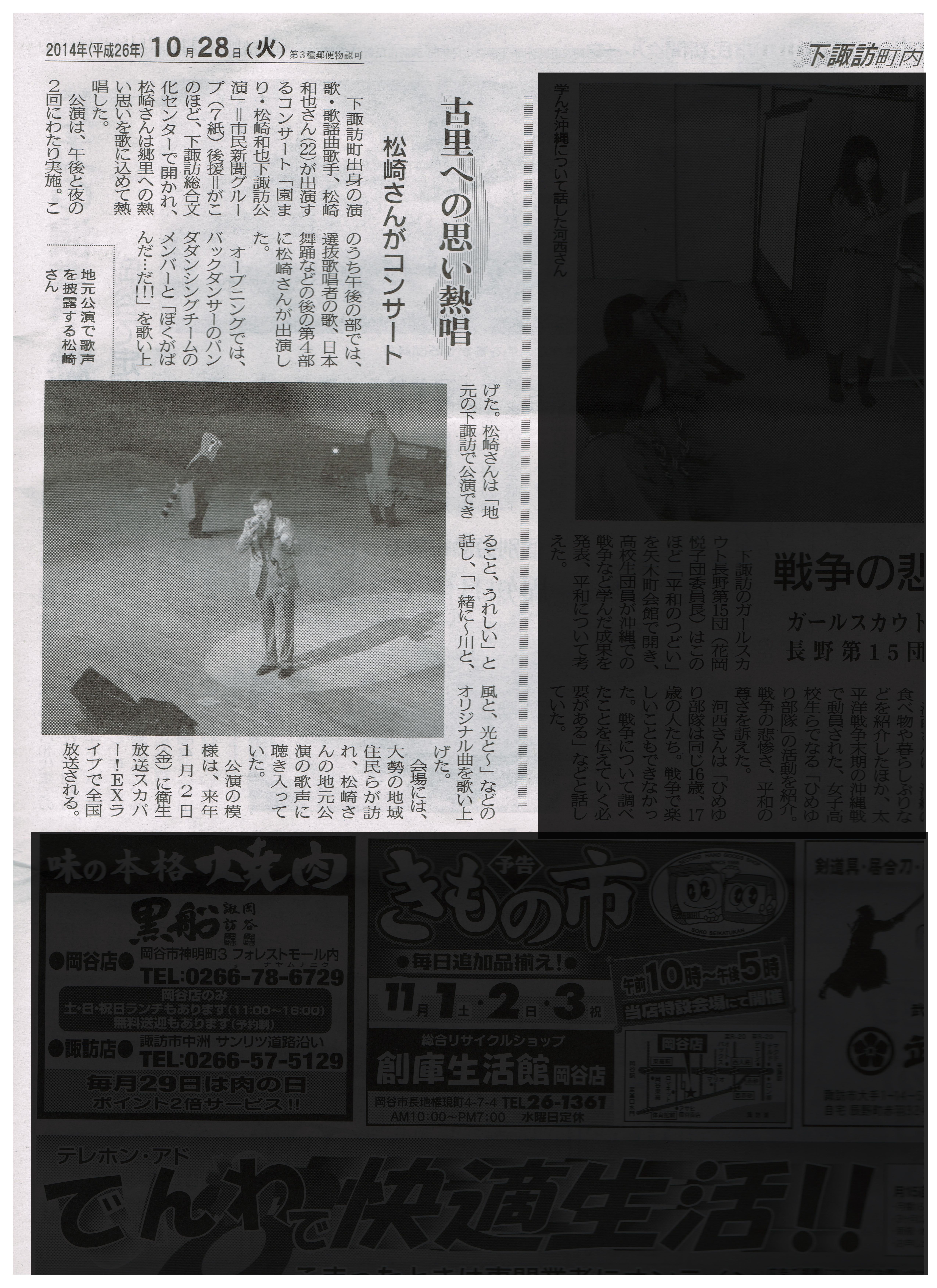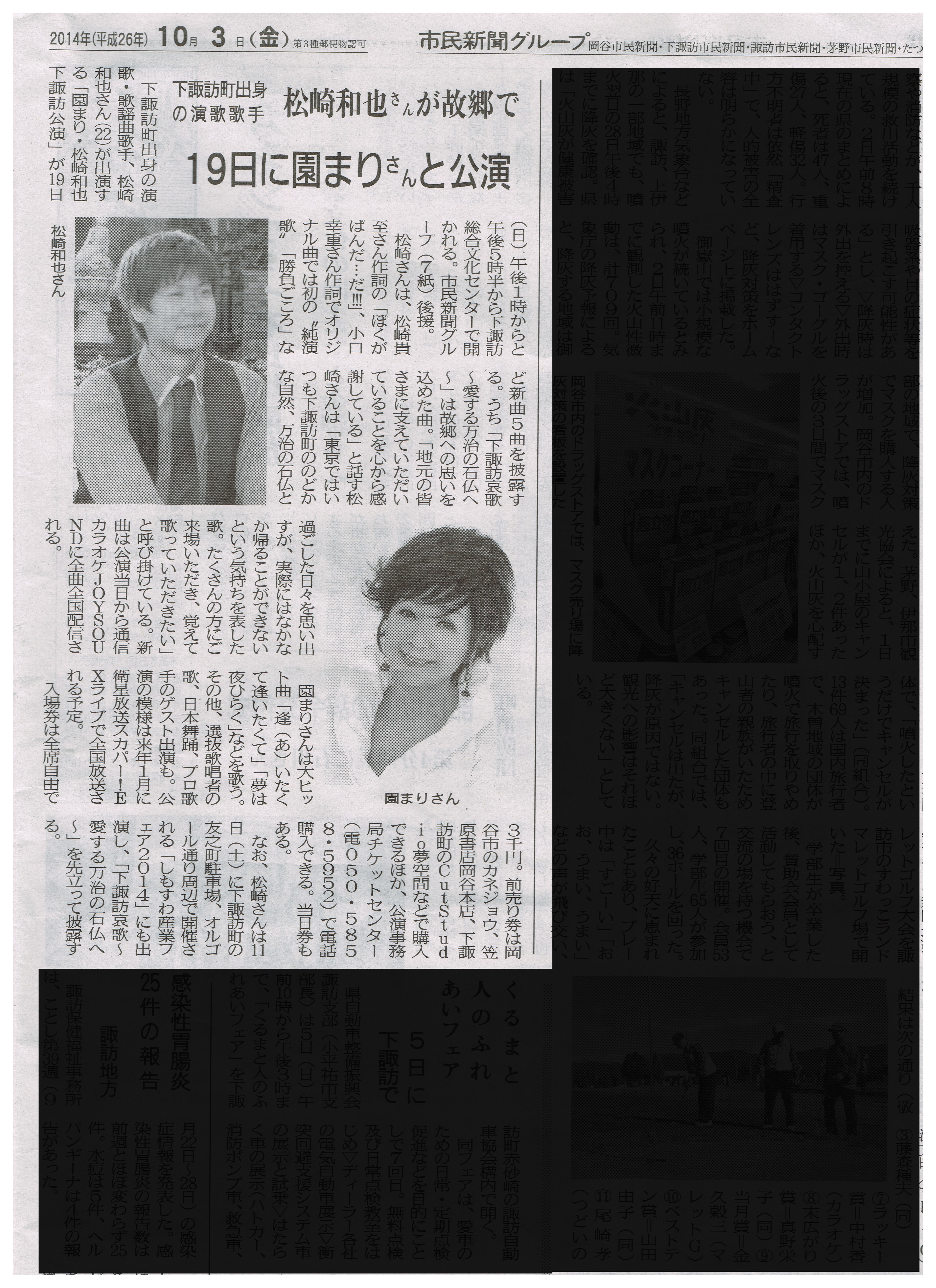 「園まり・松崎和也下諏訪公演」記事