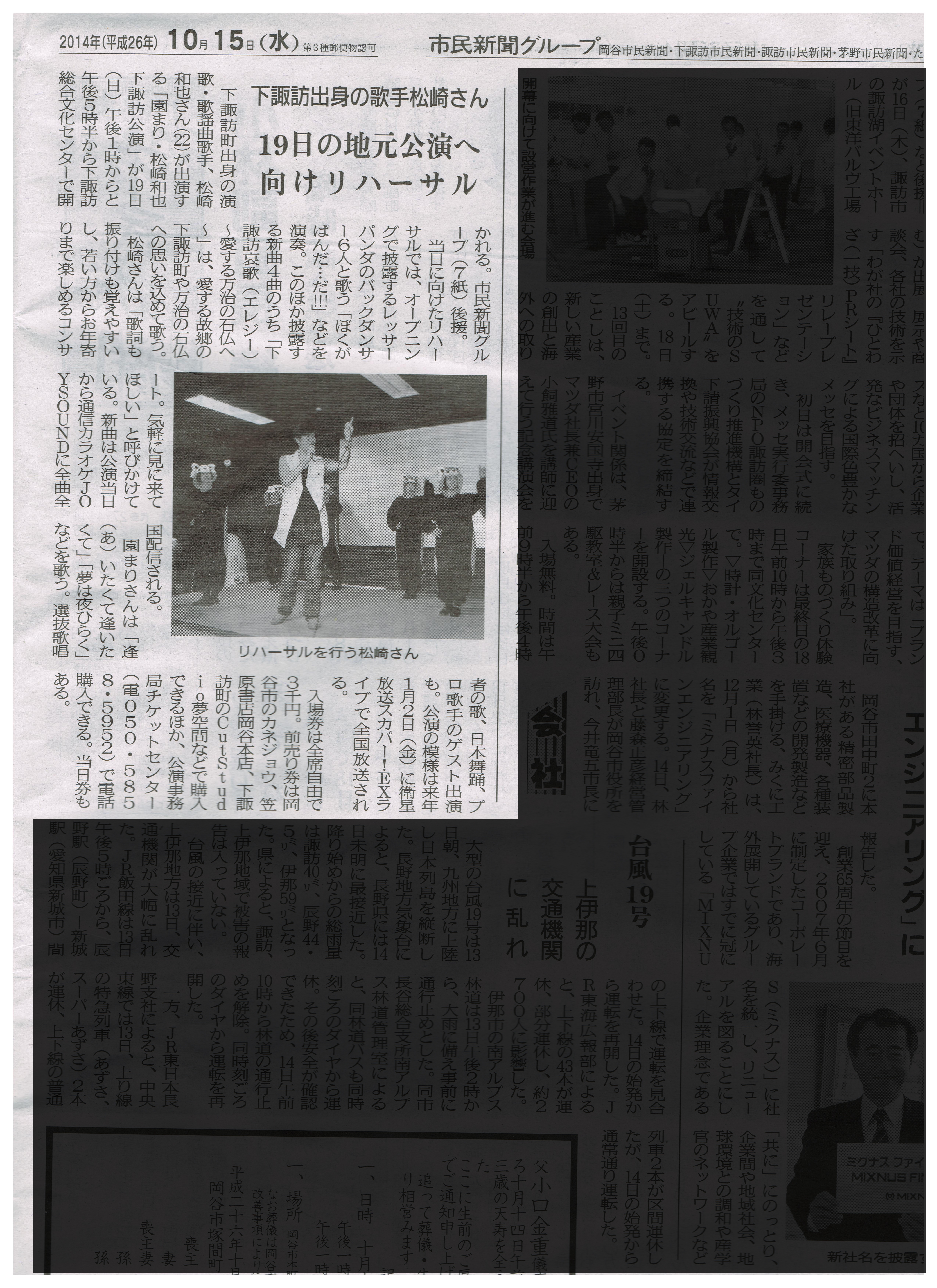 2014年10月3日 信州・市民新聞グループ(7紙)掲載